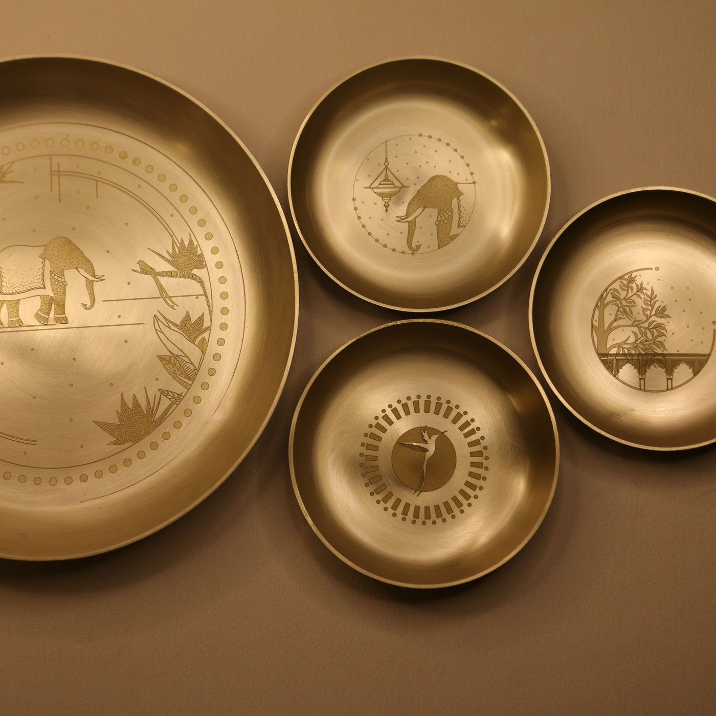 Each thali, katori, glass, and spoon in this set is handcrafted and softly polished, carrying with it a gentle glow. Over time, a natural patina may appear - this is not a flaw, but a quiet reminder that this collection is designed to feel lived-in, loved, and lasting.